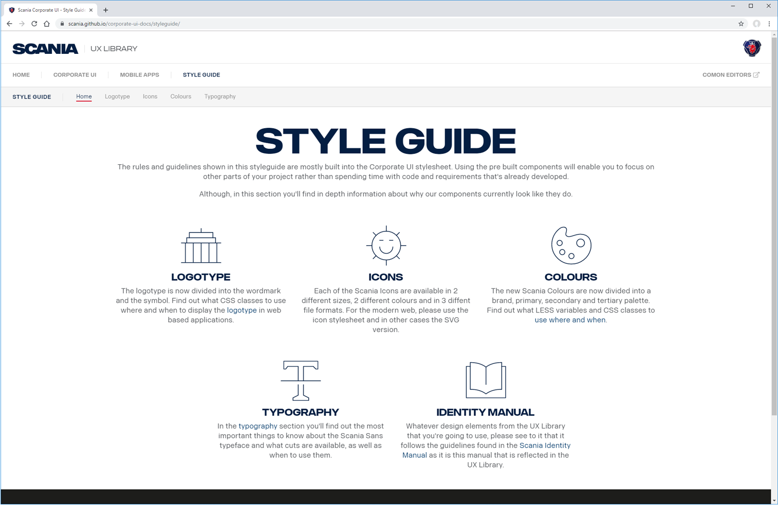 I created a Style Guide for Scania's UX Library that includes non-HTML components like logos, icons, and fonts to save developers and designers effort and time.